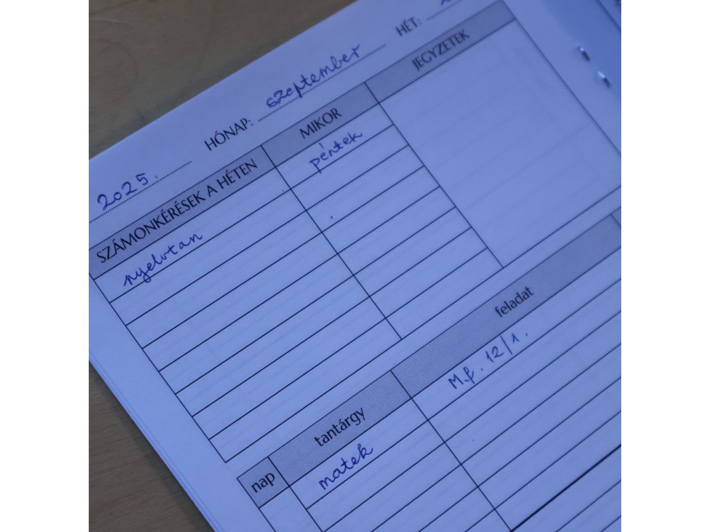 - 10, illetve 12 dupla oldal egy hét számonkéréseinek és házi feladatainak rögzítésére