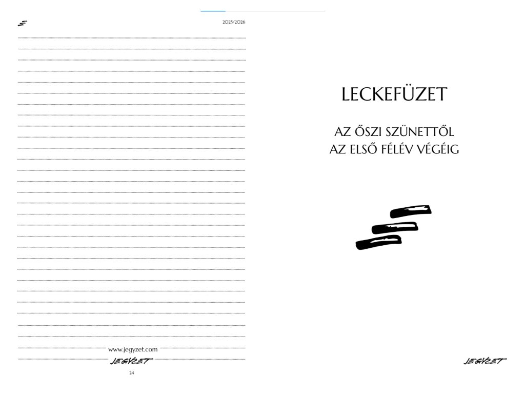 4 részes leckefüzetünk az őszi szünetig, az első félév végéig, a tavaszi szünetig és az év végéig tartalmazza azokat a lapokat, melyekre minden fontos dolog följegyezhető, hogy semmilyen házi feladat vagy számonkérés ne merüljön feledésbe.